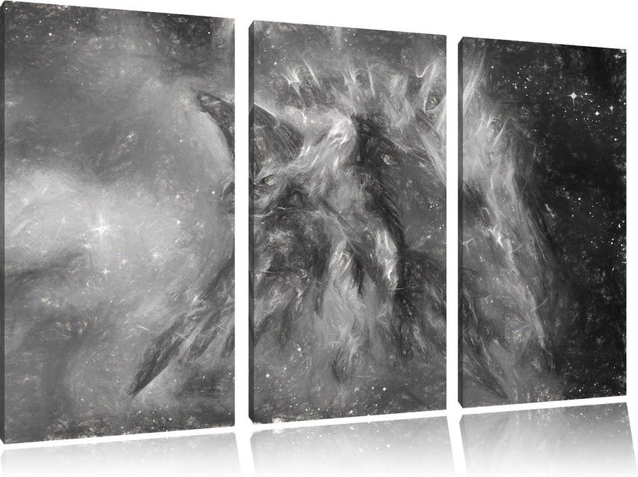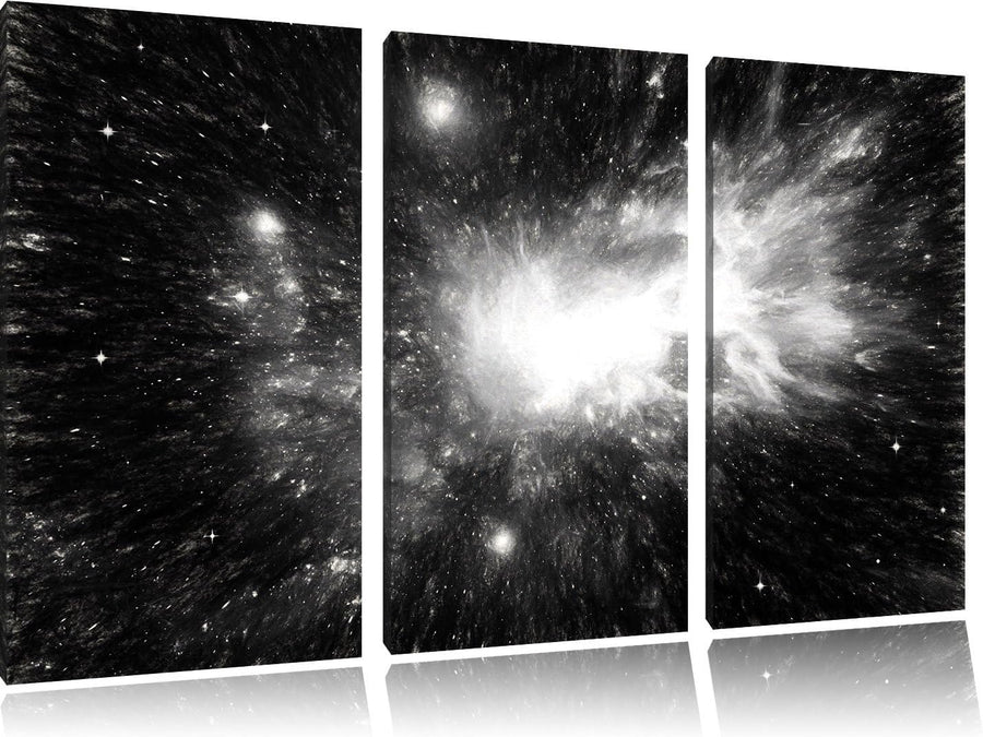 Pixxprint Ferne Galaxie im Sternenstaub Kunst B&W 3-Teiler Leinwandbild 120x80 Bild auf Leinwand