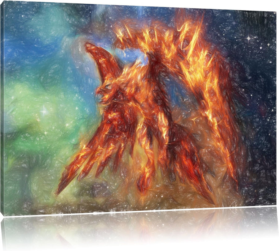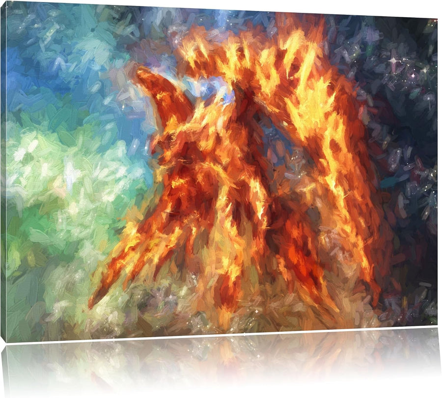 Pixxprint Feuriger Adler als Leinwandbild/Grösse: 100x70 cm/Wandbild/Kunstdruck/fertig bespannt, 100