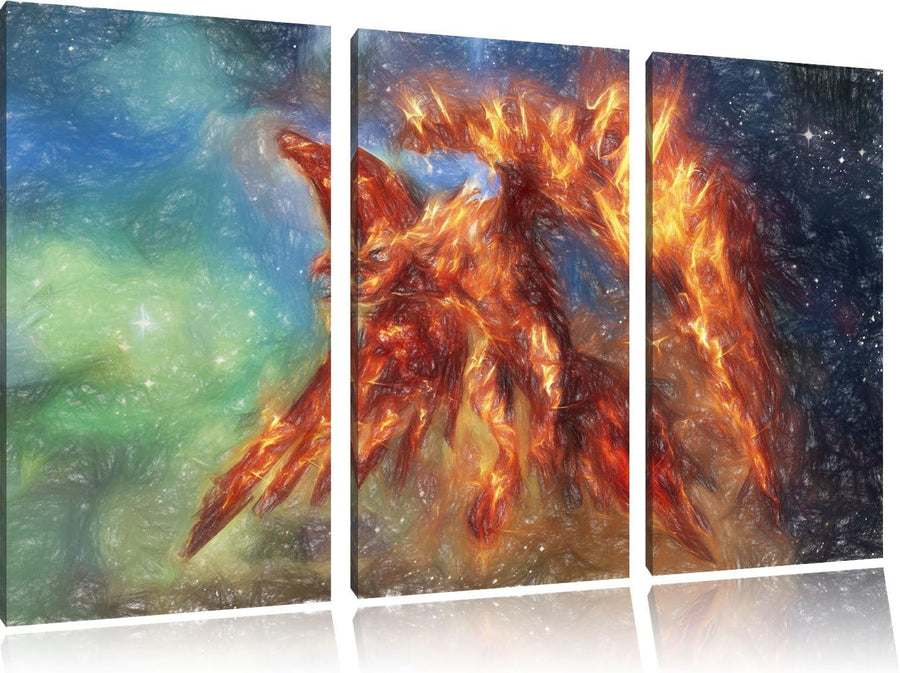 Pixxprint Feuriger Adler als Leinwandbild/Grösse: 3 Teilig (120x80) cm/Wandbild/Kunstdruck/fertig be