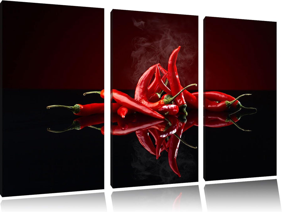 Pixxprint Feurige rote Chili-Schoten Kunst als Leinwandbild/Grösse: 3 Teilig (120x80) cm/Wandbild/Ku