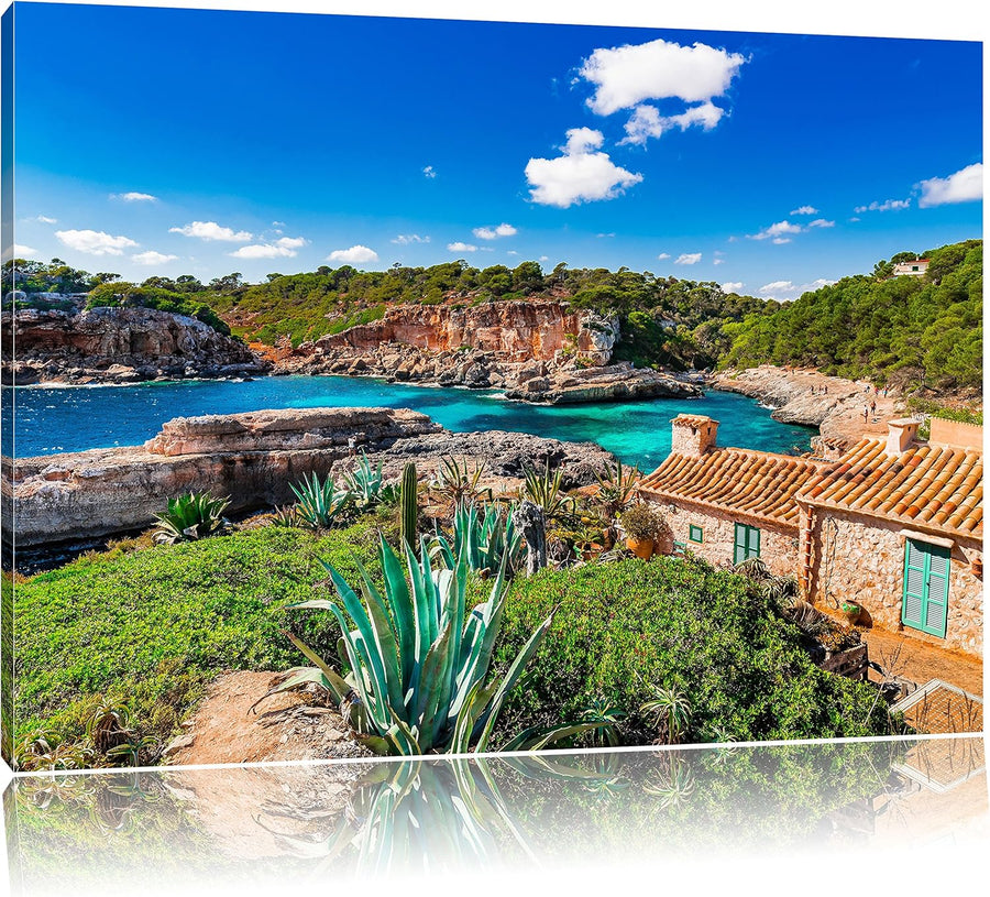 Pixxprint Ferienhaus an der spanischen Küste als Leinwandbild/Grösse: 100x70 cm/Wandbild/Kunstdruck/