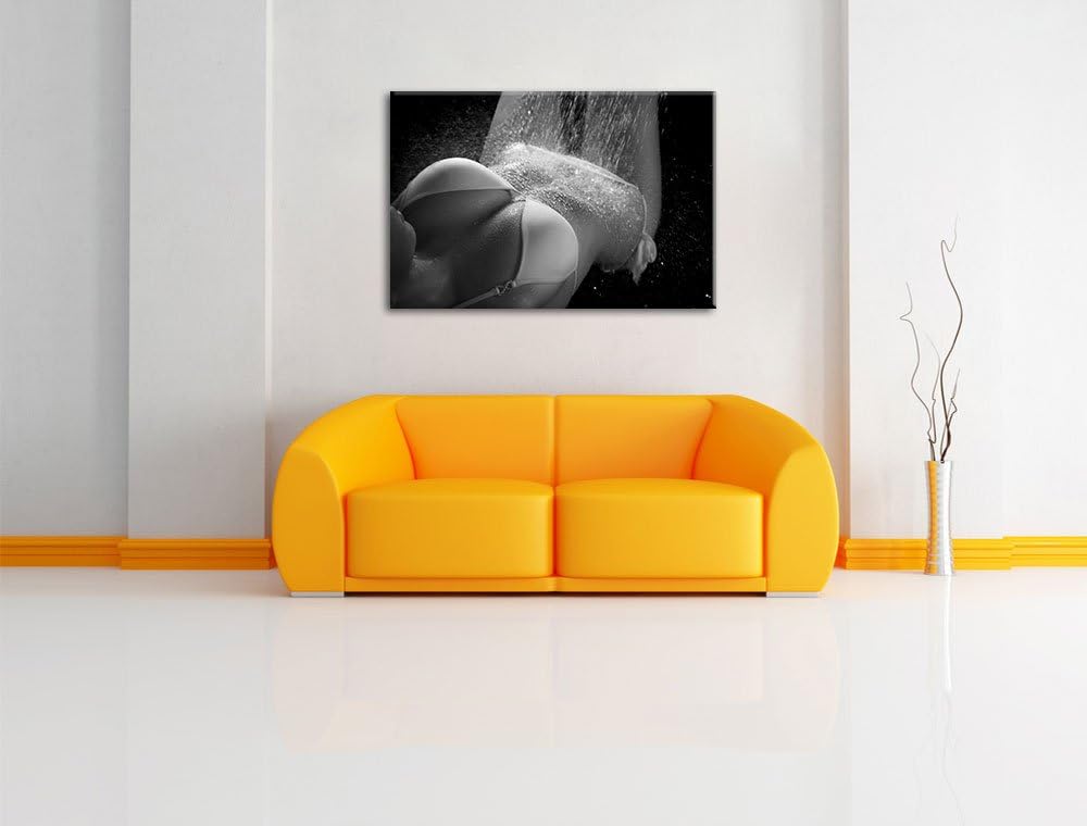 Pixxprint Frau im Bikini unter Einer Dusche als Leinwandbild/Grösse: 100x70 cm/Wandbild/Kunstdruck/f