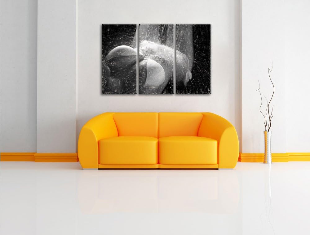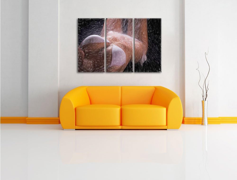 Pixxprint Frau im Bikini unter Einer Dusche als Leinwandbild/Grösse: 3 Teilig (120x80) cm/Wandbild/K