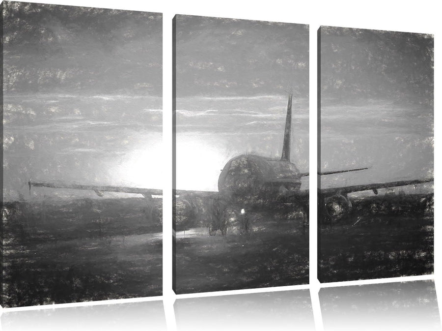 Pixxprint Flugzeug im Sonnenuntergang 3Teiler 120x80 cm Leinwandbild Wandbild Kunstdruck