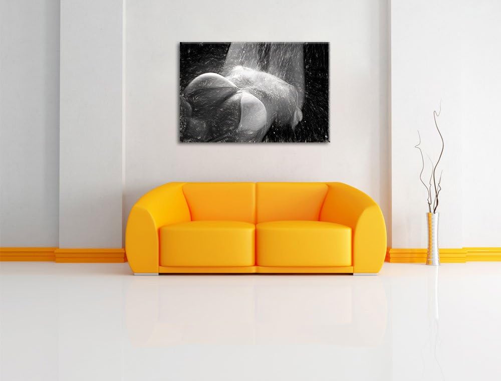 Pixxprint Frau im Bikini Unter Einer Dusche Pinsel Effekt, Format: 100x70 auf Leinwand, XXL riesige