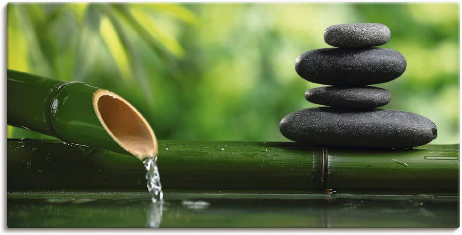 ARTland Leinwandbilder Wandbild Bild auf Leinwand 150x75 cm Wellness Zen Stein Fotografie Grün Bambu