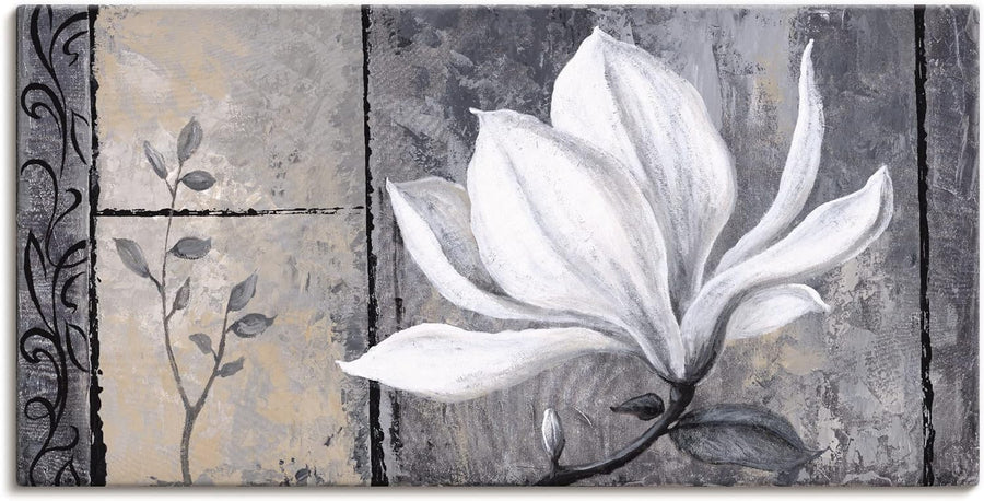 ARTland Leinwandbilder Wandbild Bild auf Leinwand 150 x 75 cm Botanik Blumen Magnolie Malerei Schwar