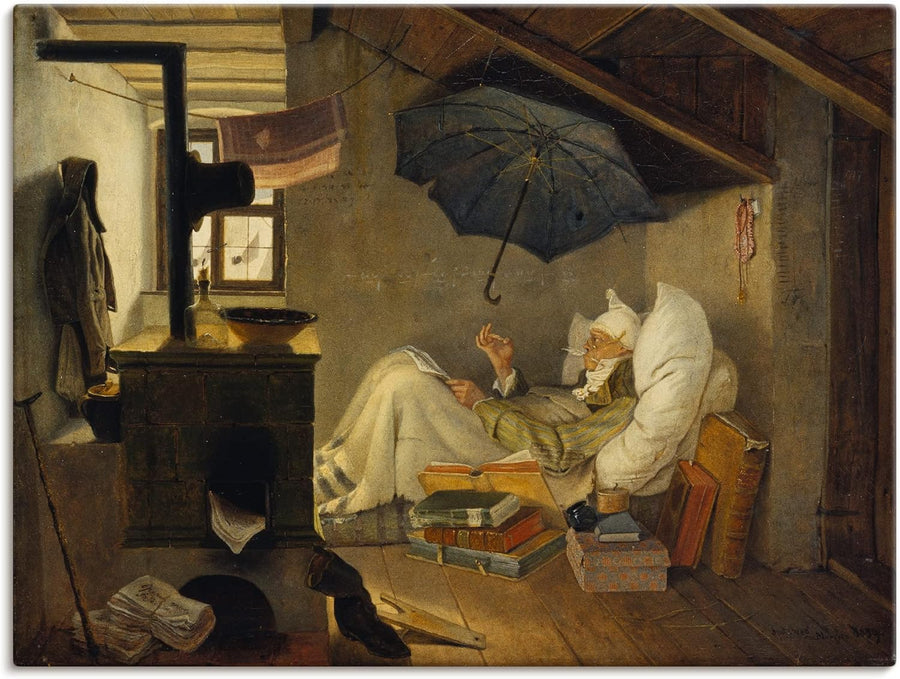 ARTland Leinwandbilder Wandbild Bild auf Leinwand 40x30 cm Wanddeko Dach Zimmer Ofen Regenschirm Arm