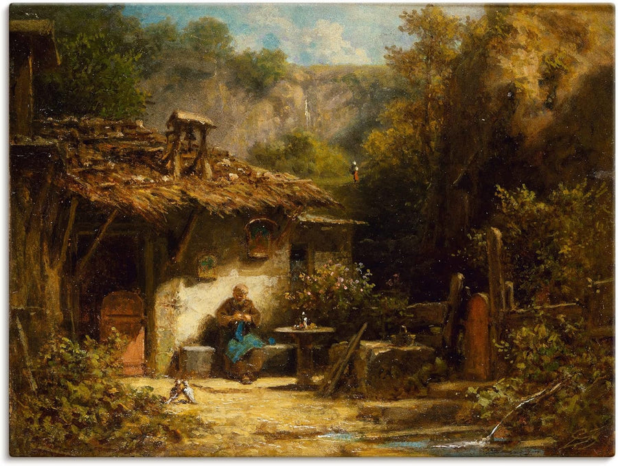 ARTland Leinwandbilder Wandbild Bild auf Leinwand 40x30 cm Wanddeko Garten Hütte Pflanzen Eremit Sit