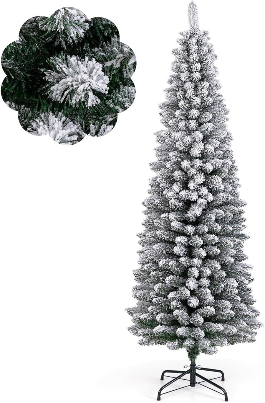COSTWAY Künstlicher Weihnachtsbaum mit Schnee, 180 cm Bleistift Tannenbaum mit 460 Zweigspitzen & kl