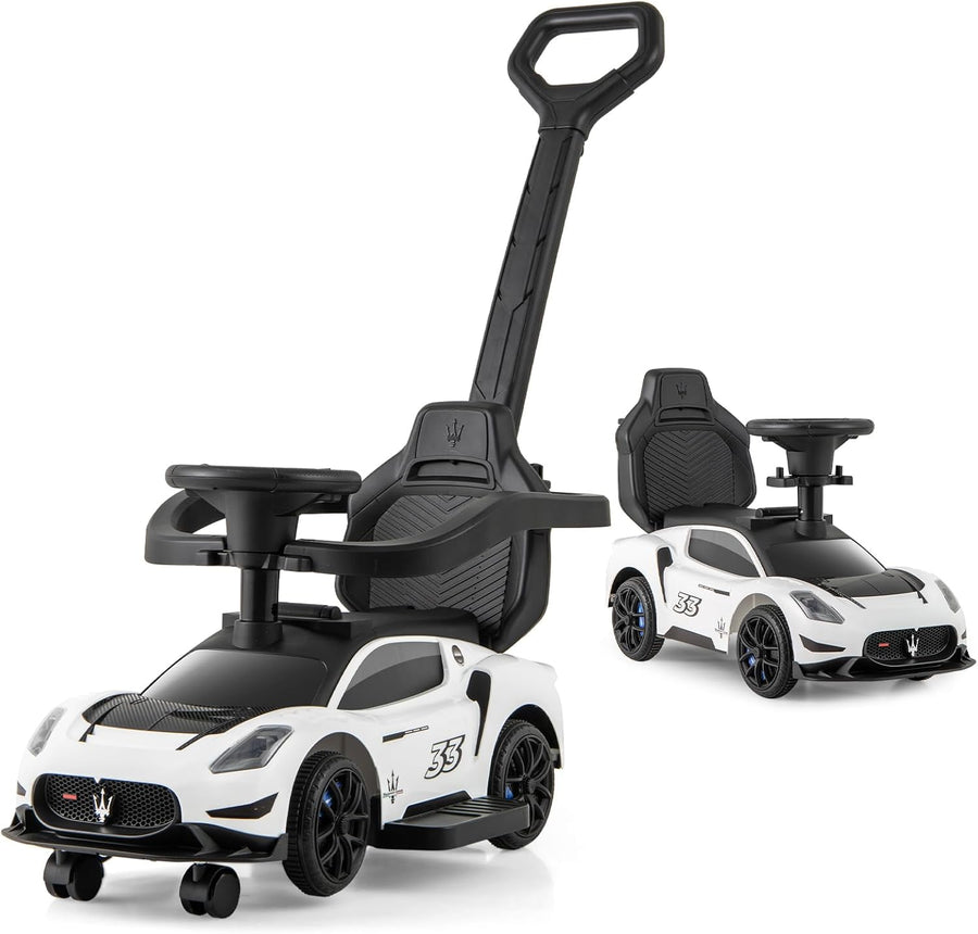 COSTWAY Mazerati Rutschauto, Rutscherfahrzeug mit Schutzbügel & Schiebestange, Schiebauto mit 2 Univ