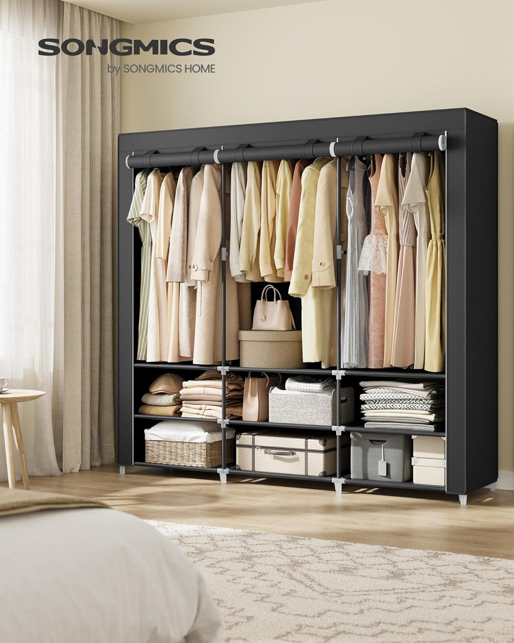 SONGMICS Stoffschrank, Kleiderschrank, 45 x 188 x 176 cm, 3 Hängefächer, mit Ablagen, 4 Seitentasche