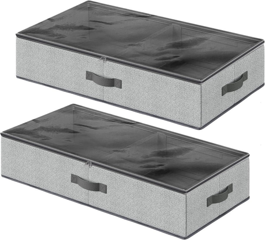 SONGMICS Unterbettkommode, 2er Set, Unterbett Aufbewahrungsbox mit Sichtfenster, Faltbarer Organizer