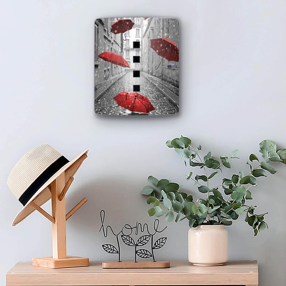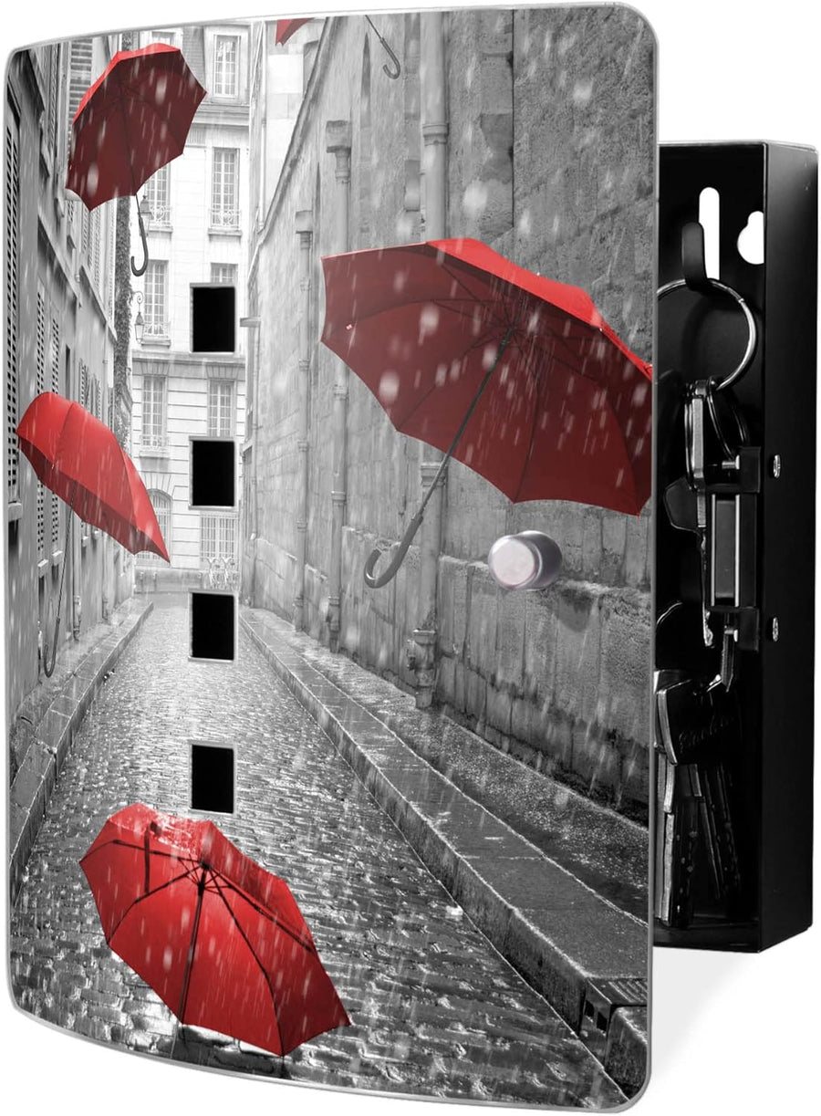 banjado® Design Schlüsselkasten aus Edelstahl mit Motiv Rote Schirme für 10 Schlüssel - Schlüsselsch