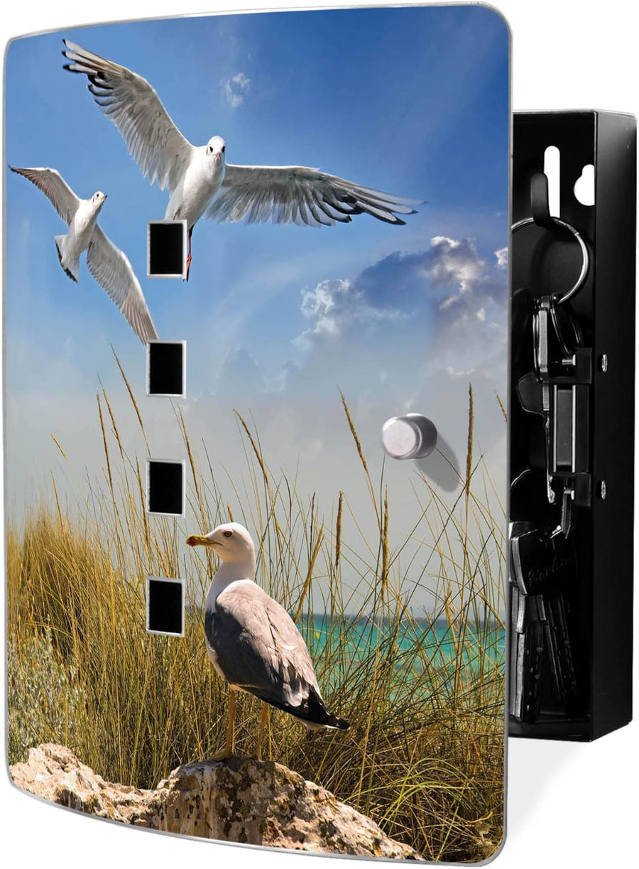 banjado® Design Schlüsselkasten aus Edelstahl mit Motiv Möwen für 10 Schlüssel - Schlüsselschrank zu