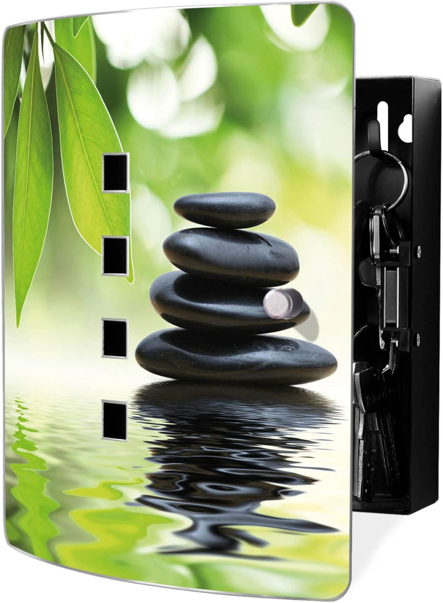 banjado® Design Schlüsselkasten aus Edelstahl mit Motiv Steine&Relax für 10 Schlüssel - Schlüsselsch