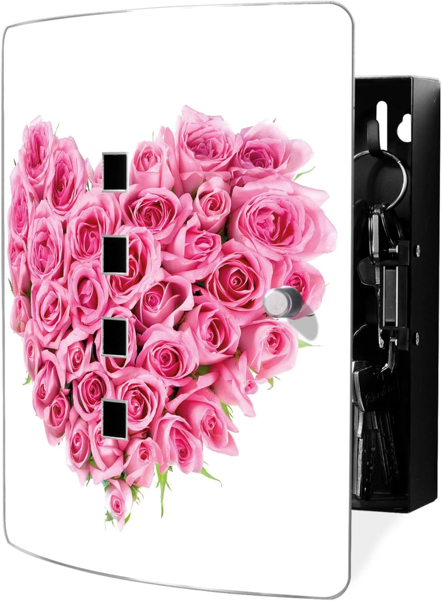 banjado® Design Schlüsselkasten aus Edelstahl mit Motiv Rosenherz für 10 Schlüssel - Schlüsselschran