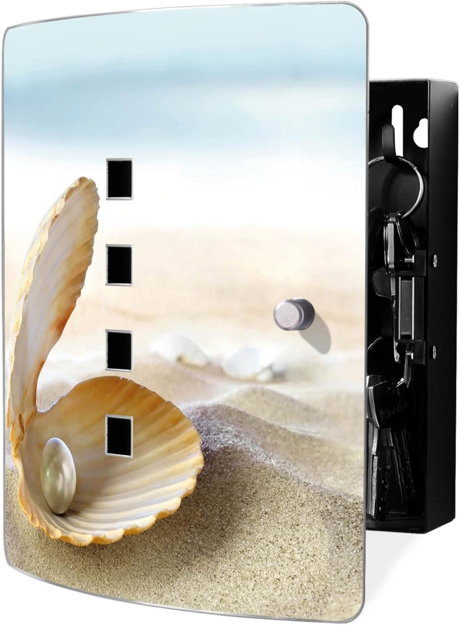 banjado® Design Schlüsselkasten aus Edelstahl mit Motiv Perlenmuschel für 10 Schlüssel - Schlüsselsc