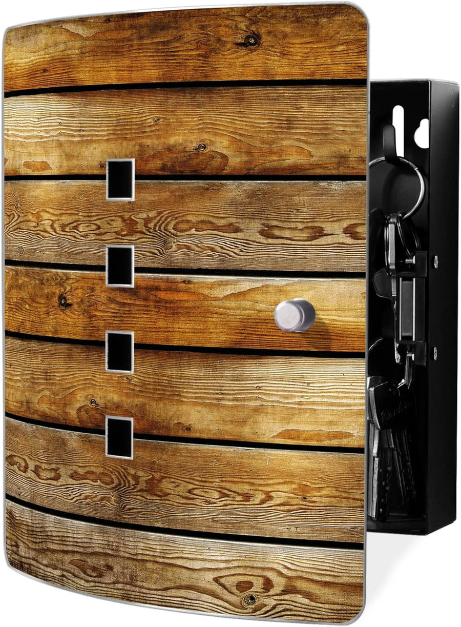 banjado® Design Schlüsselkasten aus Edelstahl mit Motiv Holzbretter für 10 Schlüssel - Schlüsselschr