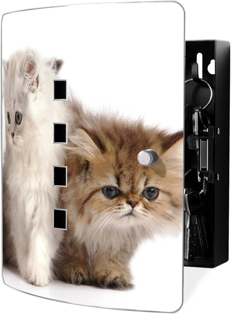 banjado® Design Schlüsselkasten aus Edelstahl mit Motiv Kaetzchen für 10 Schlüssel - Schlüsselschran