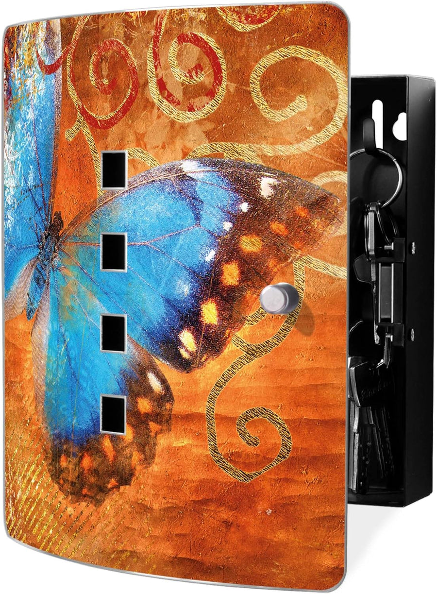 banjado® Design Schlüsselkasten aus Edelstahl mit Motiv Schmetterling für 10 Schlüssel - Schlüsselsc