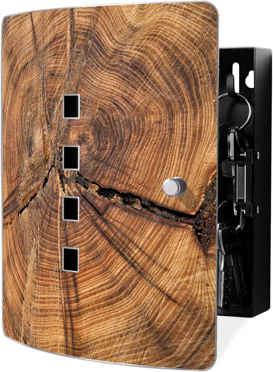 banjado® Design Schlüsselkasten aus Edelstahl mit Motiv Holz für 10 Schlüssel - Schlüsselschrank zur