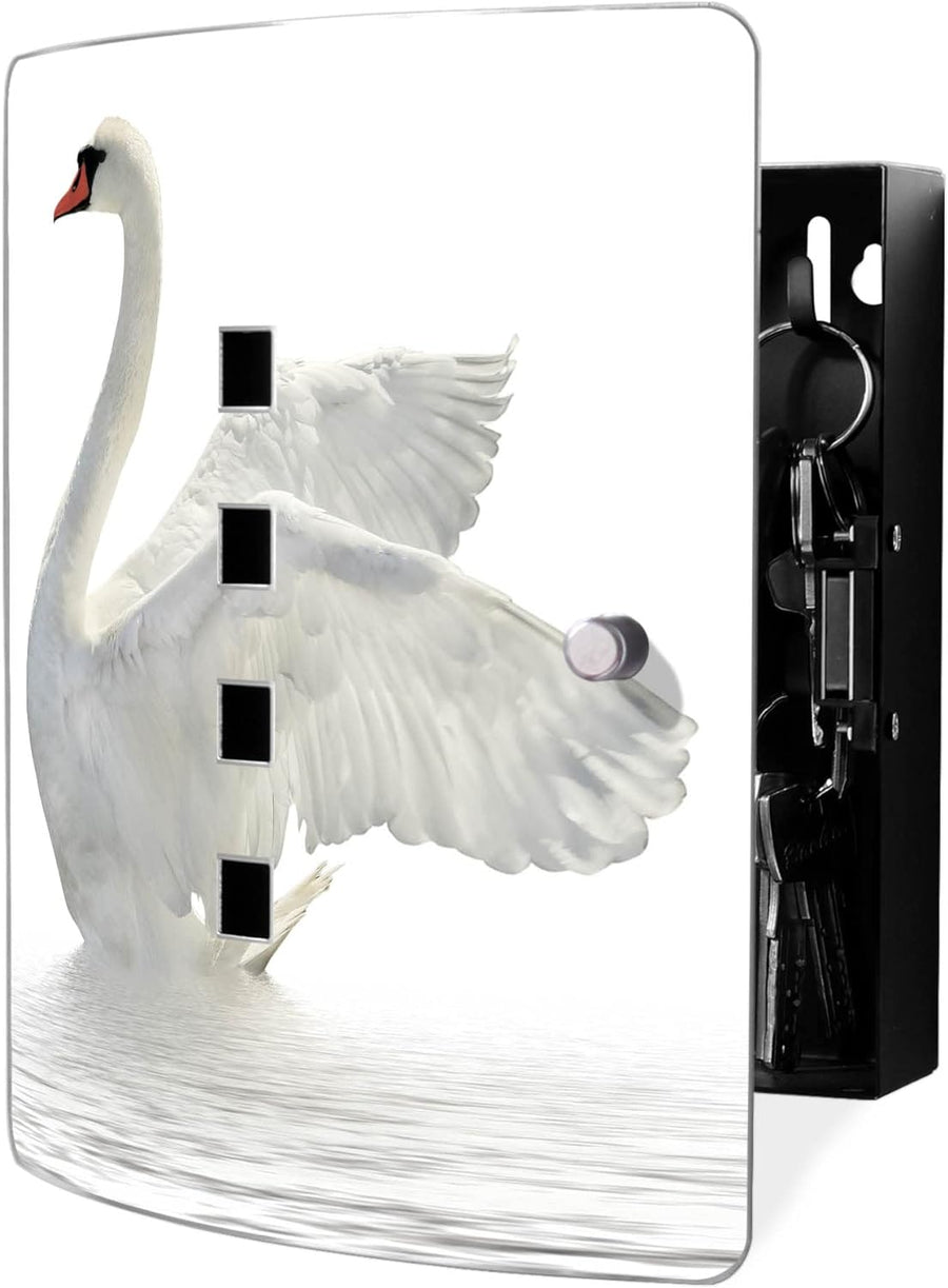 banjado® Design Schlüsselkasten aus Edelstahl mit Motiv Schwan für 10 Schlüssel - Schlüsselschrank z