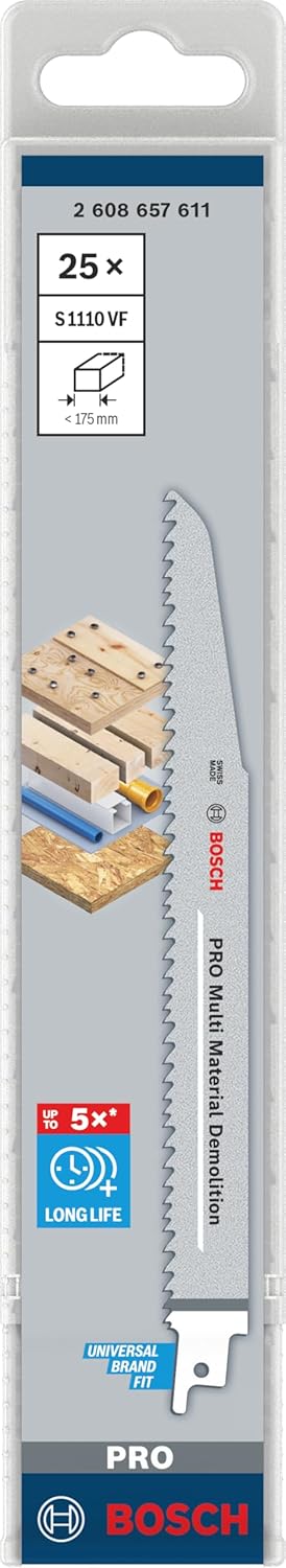Bosch 25x PRO Multi Material S1110VF Demolition Säbelsägeblatt (für Holz mit Nägeln, Bauholz, Länge