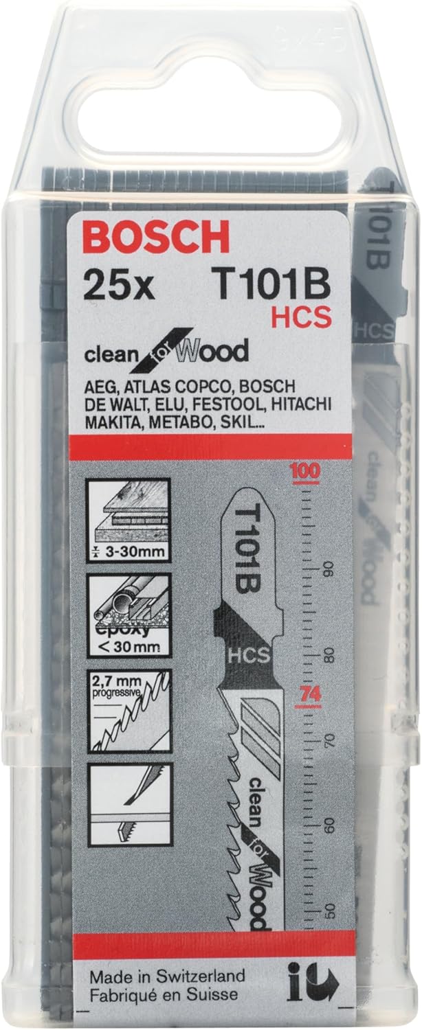 Bosch 25x Stichsägeblatt T 101 B (für weiches Holz, gerader Schnitt, Professional Zubehör Stichsäge)