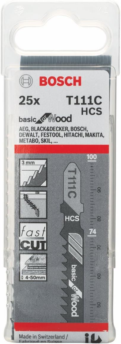Bosch 25x Stichsägeblatt T 111 C (für weiches Holz, gerader Schnitt, Professional Zubehör Stichsäge)