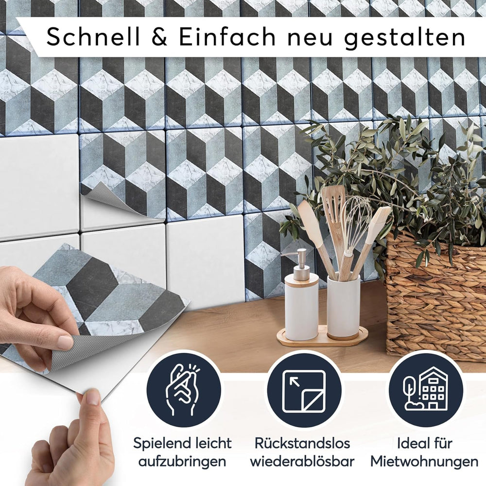Dekorative Klebefolie für Fliesen I Dekorfliesen-Aufkleber für eine bunte Wandgestaltung - Einfaches