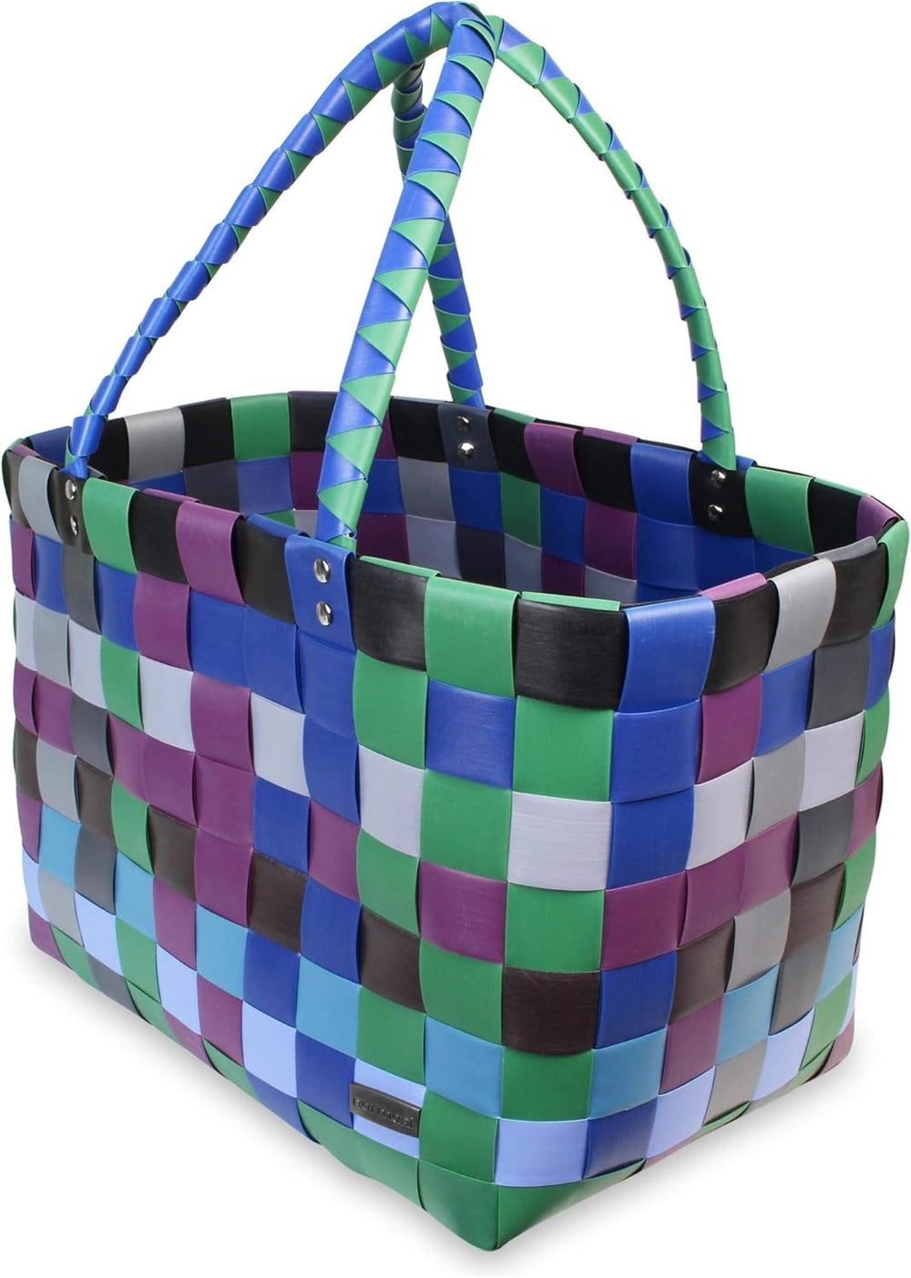 normani® Einkaufstasche Shopper geflochten aus Kunststoff - robuster Strandkorb Vintage Style 38cm x