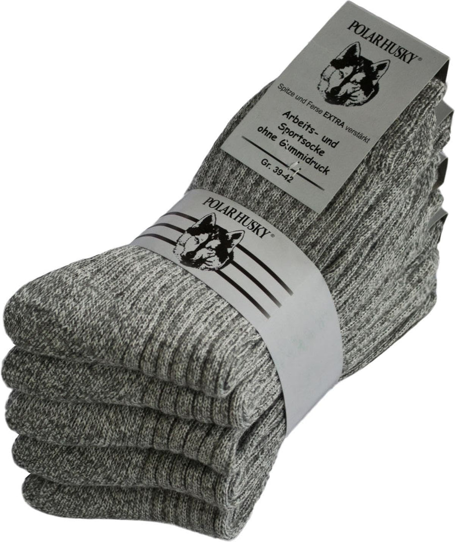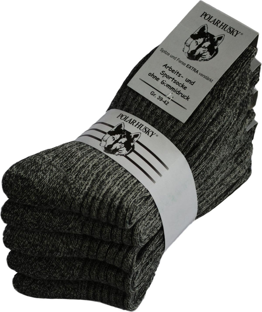 Polar Husky® 10 Paar Warme Norweger-Arbeitssocken, anthrazit, mit Frotteesohle, 80% Schafwolle, ohne