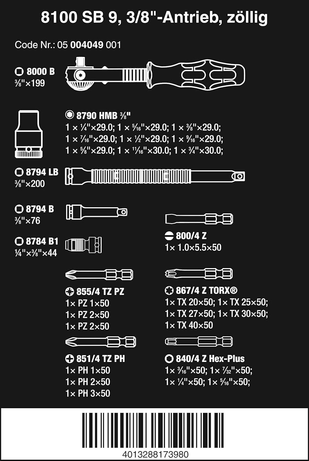 Wera 8100 SB 9 Zyklop Speed-Knarrensatz, 3/8 Zoll-Antrieb, zöllig, 29-teilig, 05004049001 3/8 Zoll z