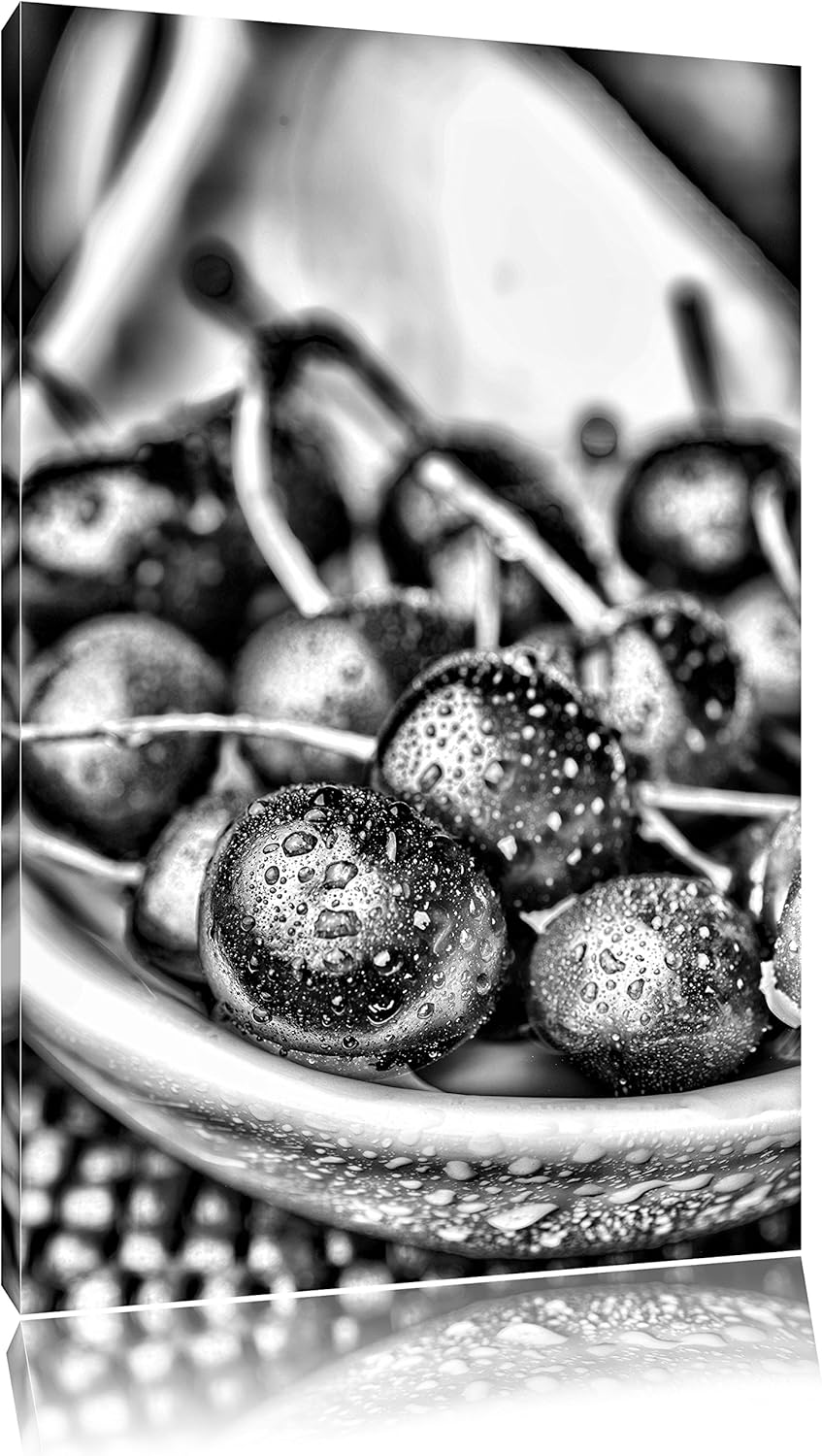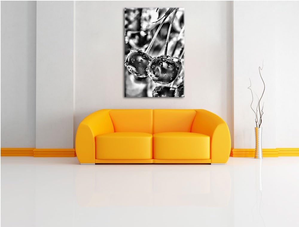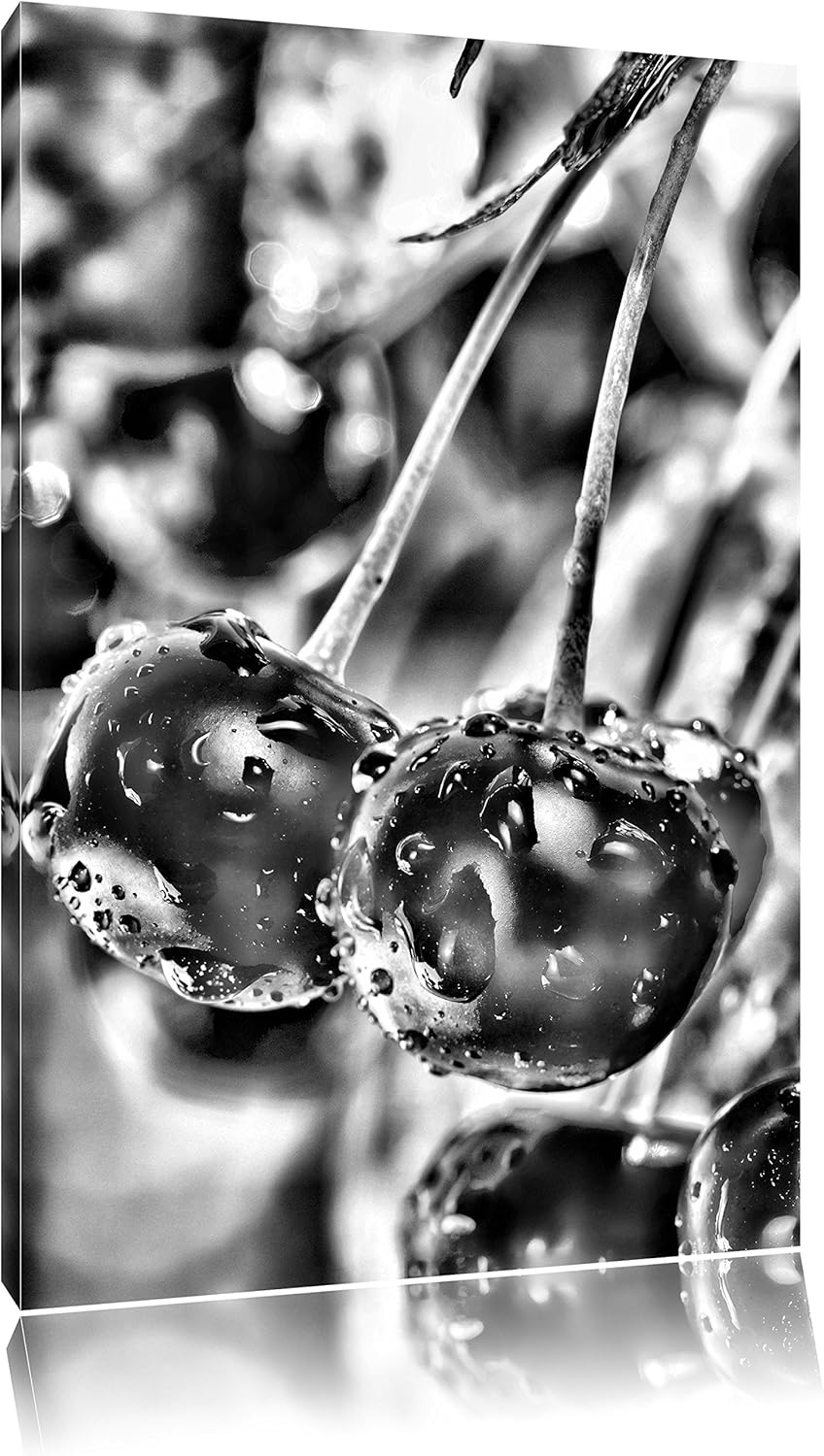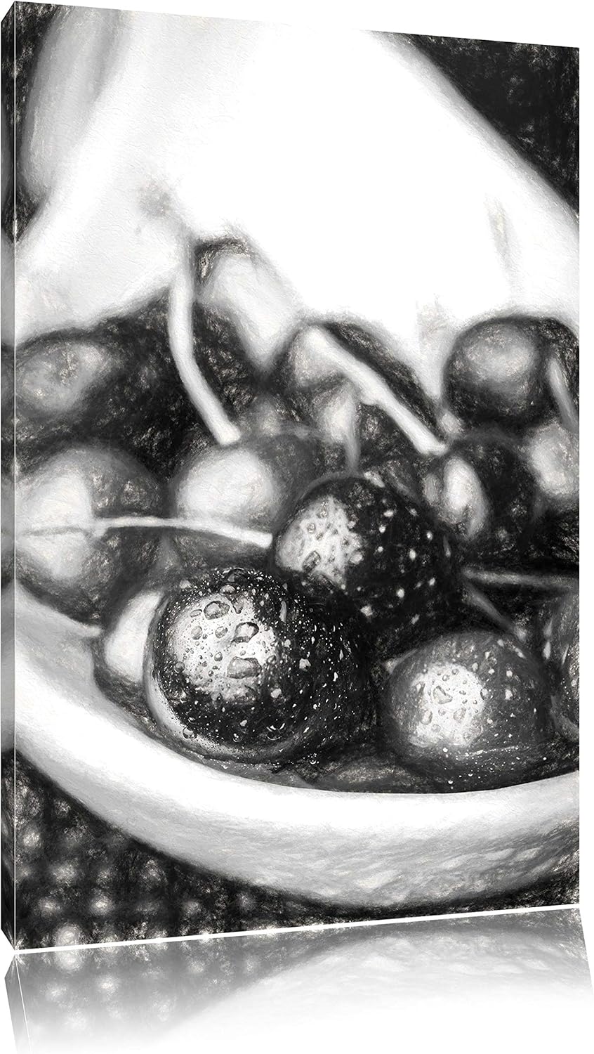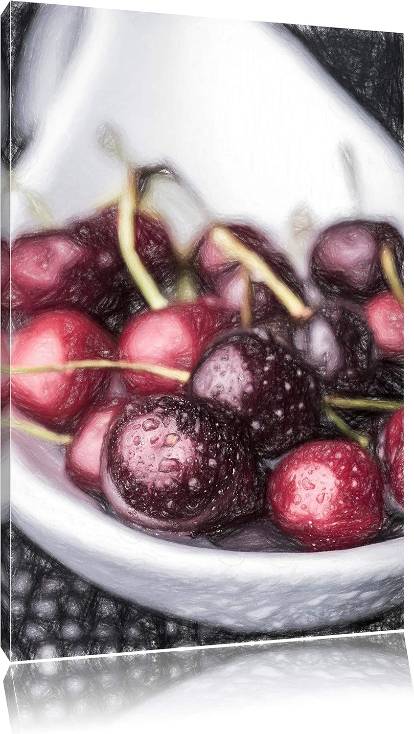 Pixxprint Frische Kirschen in Schlüssel Kohle Zeichnung Effekt, Format: 100x70 auf Leinwand, XXL rie
