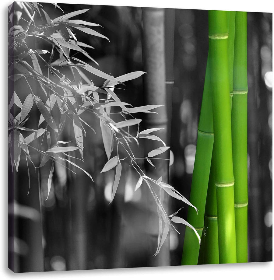 Pixxprint frischer grüner Bambus als Leinwandbild/Grösse: 70x70 cm/Wandbild/Kunstdruck/fertig bespan