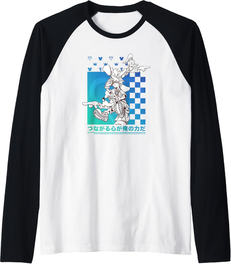 Disney Kingdom Hearts Sora Donald Goofy Kanji Checkerboard Raglan