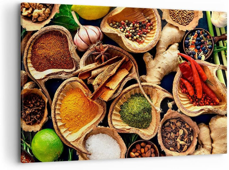 Bilder auf Leinwand 100x70cm Leinwandbild Küche Essen Kräuter Gewürze Gross Wanddeko Bild Schlafzimm