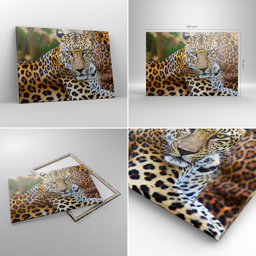 Bilder auf Leinwand 100x70cm Leinwandbild Leopard tier savanne afrika Gross Wanddeko Bild Schlafzimm