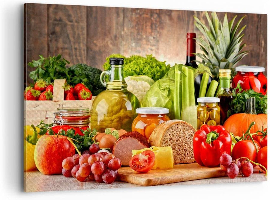 Bilder auf Leinwand 100x70cm Leinwandbild Lebensmittel Gemüse Brokkoli Fleisch Gross Wanddeko Bild S