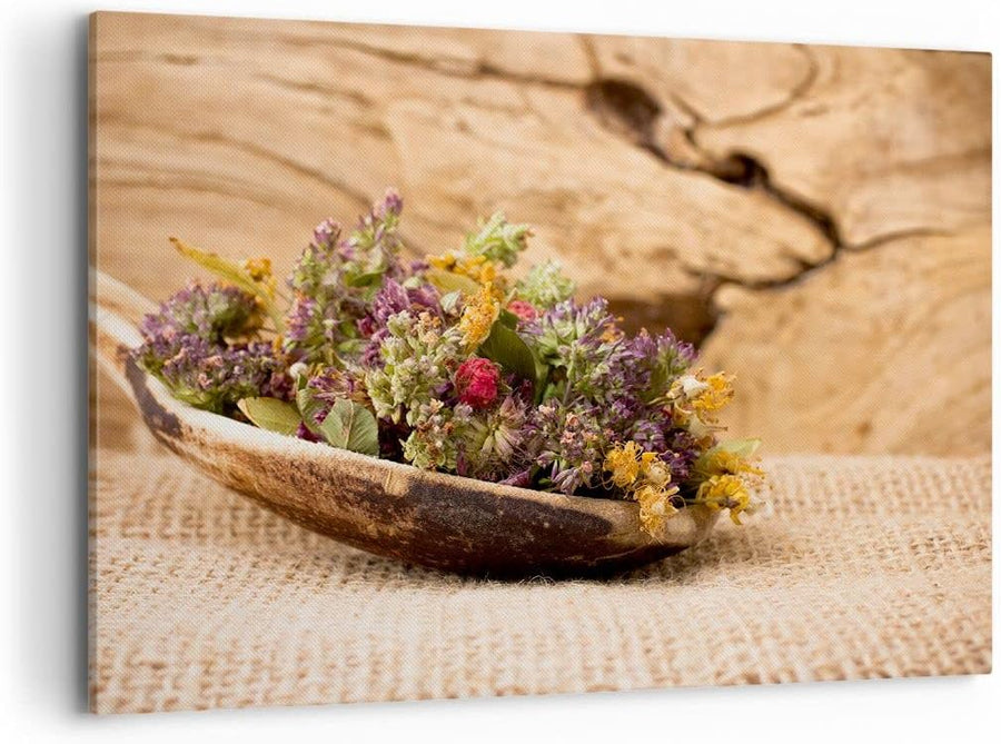 Bilder auf Leinwand 100x70cm Leinwandbild Kraut Tee Bio getrocknete Kräuter Gross Wanddeko Bild Schl