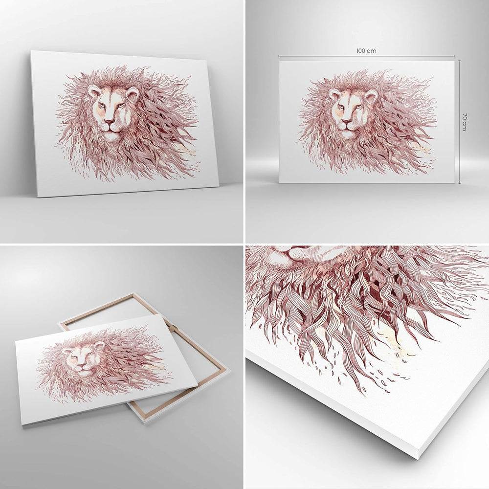Bilder auf Leinwand 100x70cm Leinwandbild Löwe Illustration modern Gross Wanddeko Bild Schlafzimmer