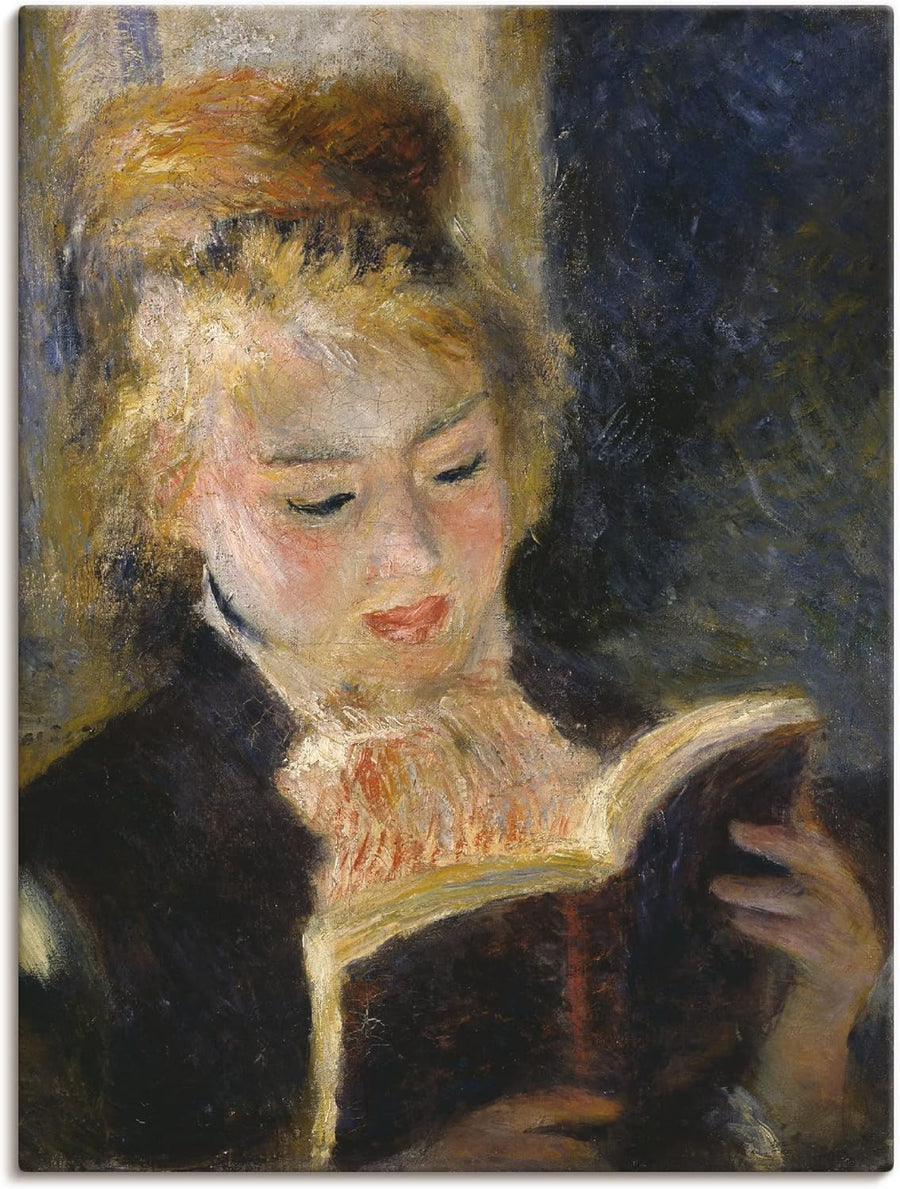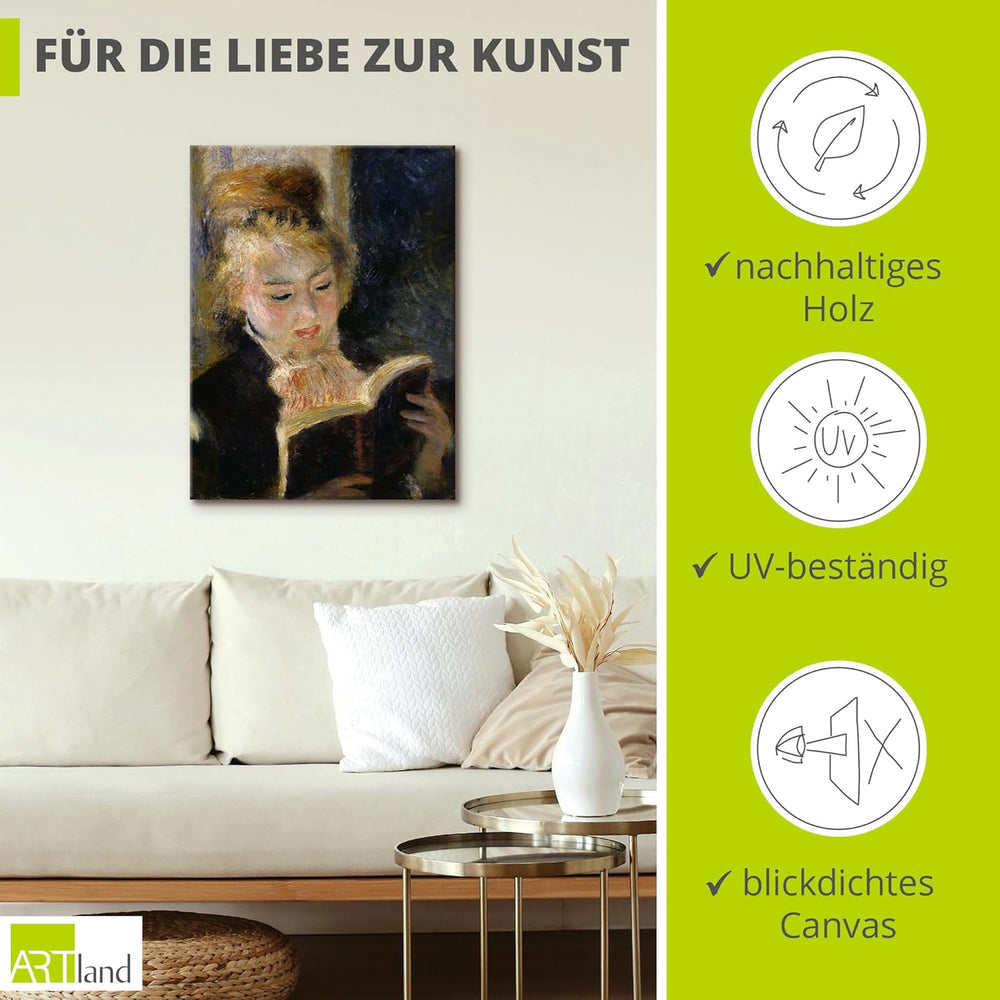 ARTland Leinwandbilder Wandbild Bild auf Leinwand 45x60 cm Wanddeko Frau Buch Lesendes Mädchen Impre
