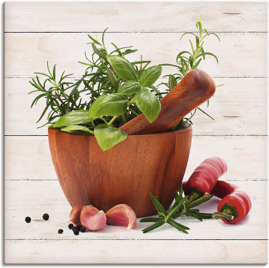 ARTland Leinwandbilder Wandbild Bild auf Leinwand 40x40 cm Stillleben Kräuter Gewürze Chili Mörser H