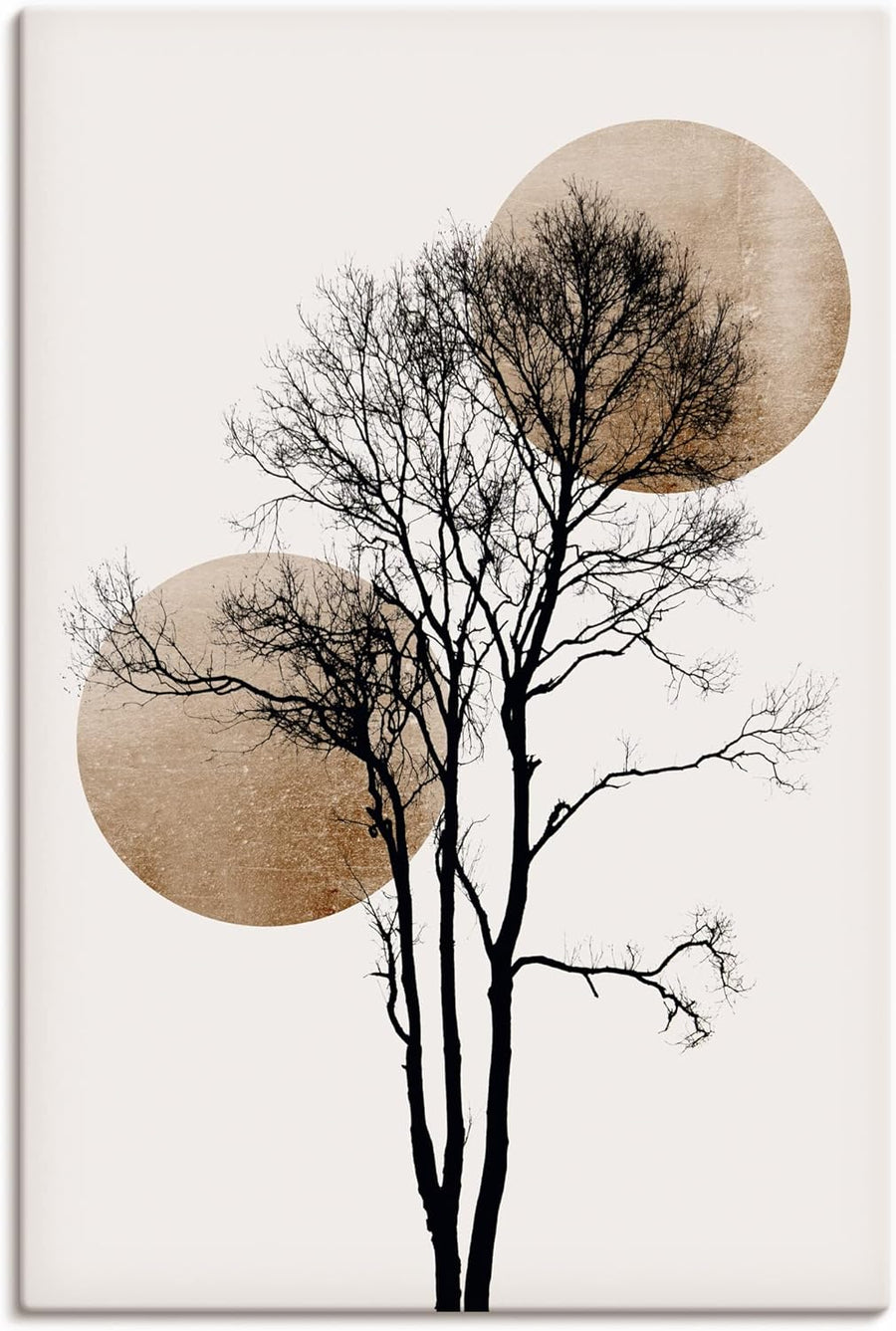 ARTland Leinwandbilder Wandbild Bild auf Leinwand 40x60 cm Wanddeko Minimalismus Sonne Mond Baum Sil