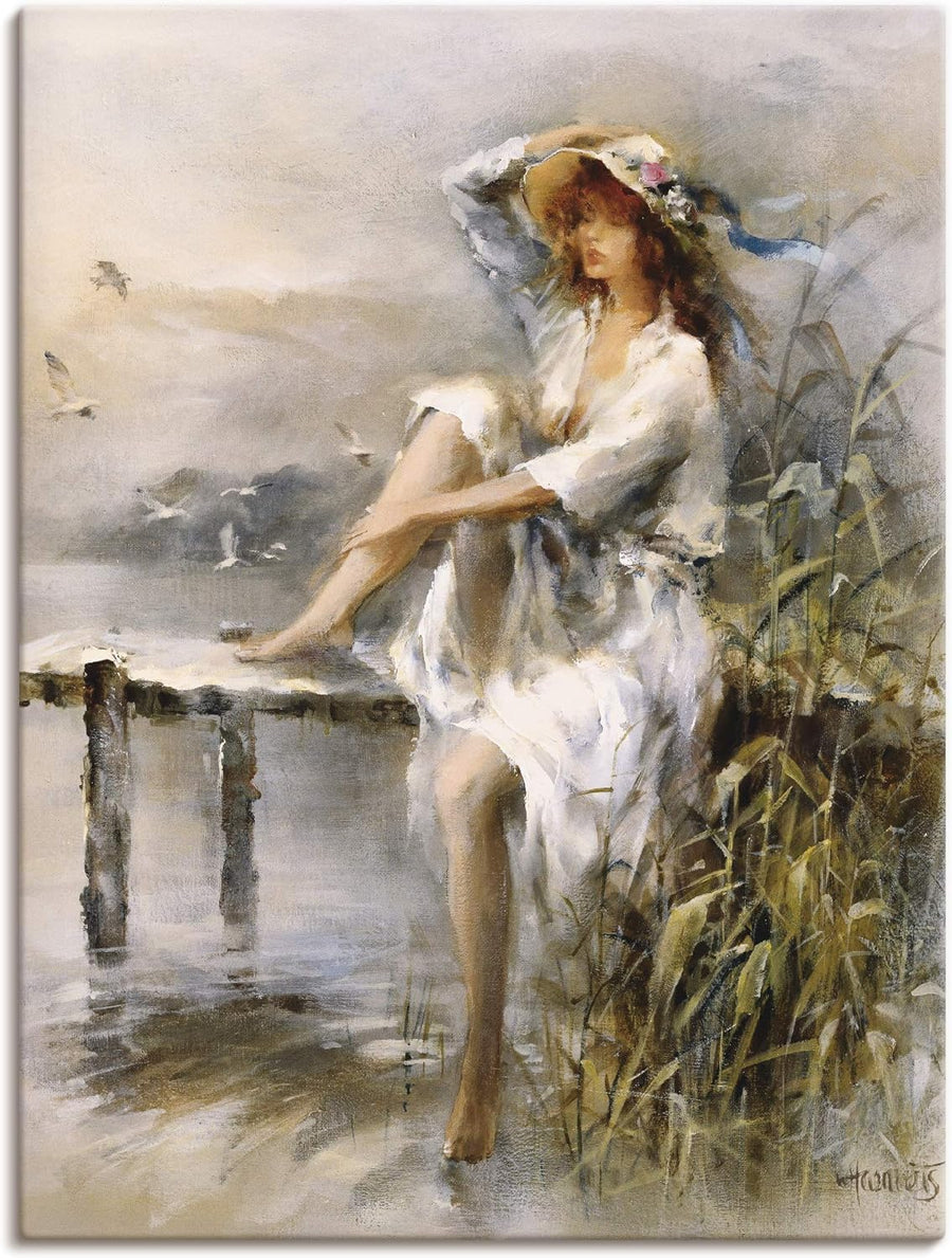 ARTland Leinwandbilder Wandbild Bild auf Leinwand 45x60 cm Wanddeko Frau Natur See Landschaft Steg G