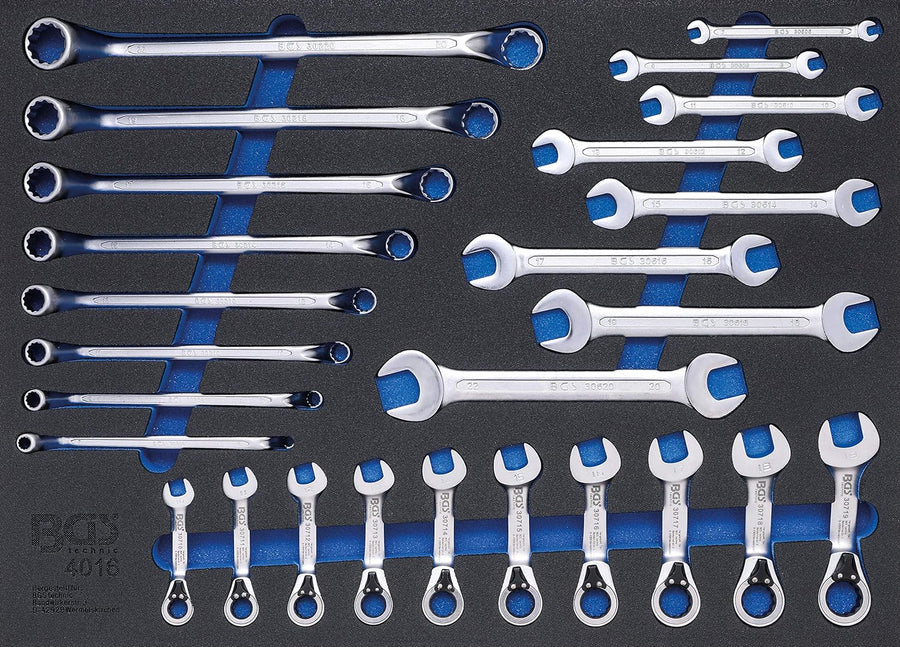 BGS 4016 | Werkstattwageneinlage 3/3: Maul/Ringschlüssel, Ratschen-Ringschlüssel | 26-tlg. Satz, Sat
