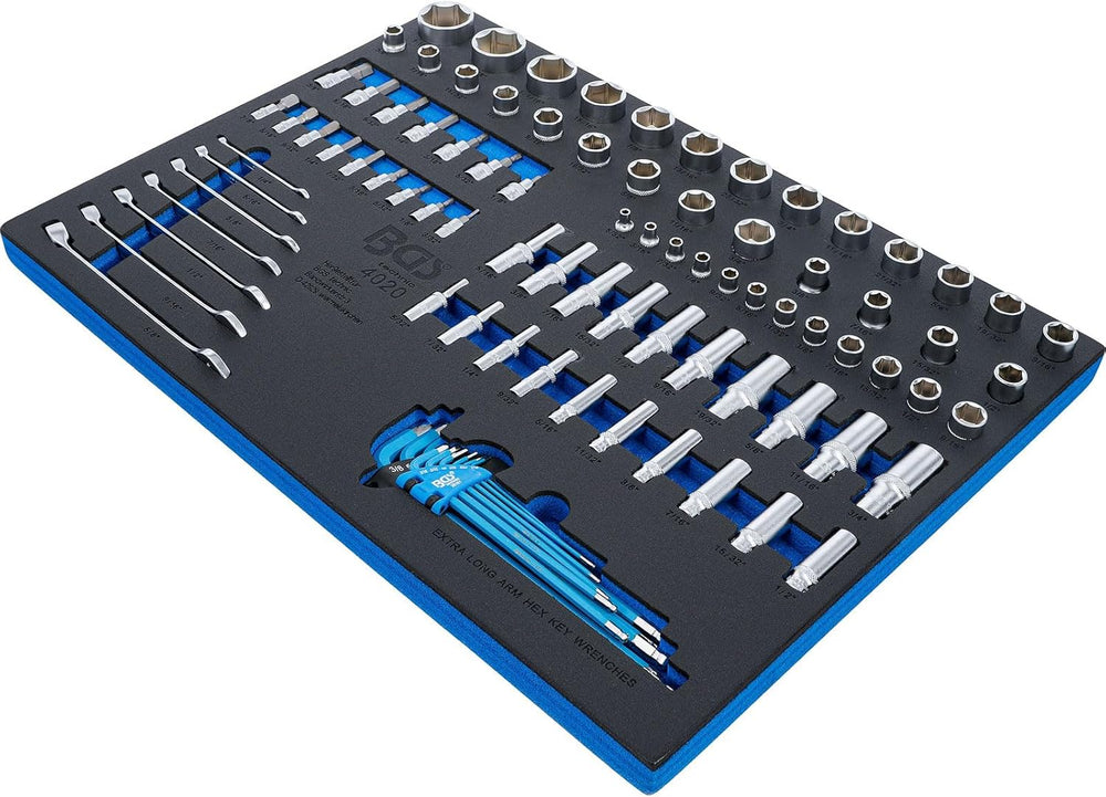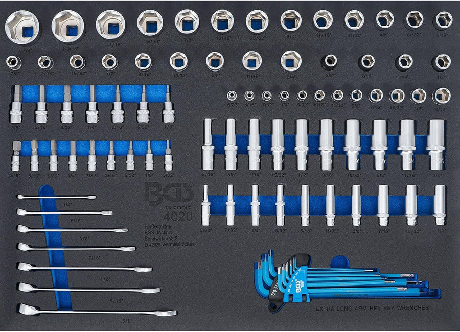 BGS 4020 | Werkstattwageneinlage 3/3: Steckschlüssel / Maul-Ringschlüssel | Zollgrössen | 90-tlg. Sa