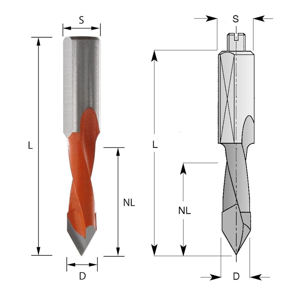 ENT 24025 Dübelbohrer HW, Schaft (S) 8 mm, Durchmesser (D) 5 mm, NL 30 mm, SL 20 mm, L 58 mm, für Ma