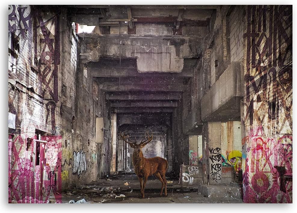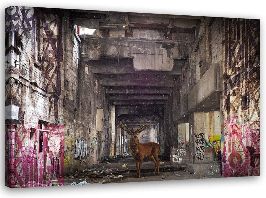 Feeby Bilder Hirsch Tier Graffiti XXL 120x80 cm 1Teilig Wohnzimmer Schlafzimmer Modern Wandbilder Le